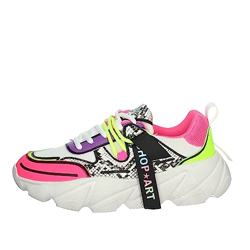 SHOP ART Scarpe Sneakers Donna Casual Sportive in Ecopelle Multicolor. Modello Chunky (Numeric_39)