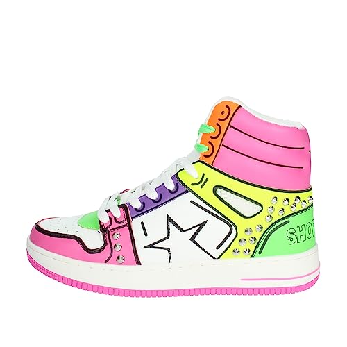 SHOP ART Scarpe Sneakers Donna Casual Sportive in Ecopelle Multicolore Fantasia Fumetto Colori Fluo. N.39