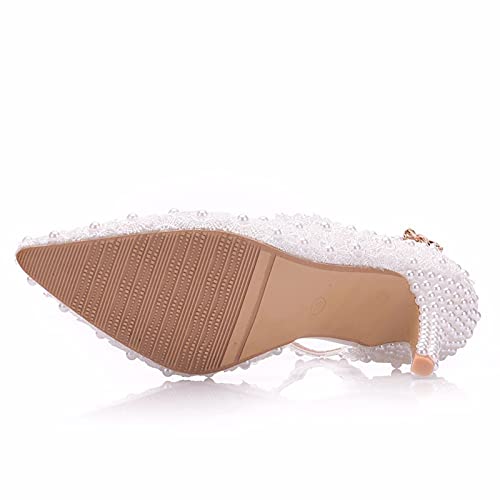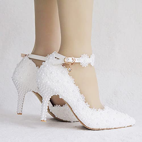 Scarpe da Sposa da Donna, Punta Chiusa Tacco Alto Pizzo Fiore Bianco 8 Cm Festa di Ballo di Ballo Scattare Foto di Nozze Scarpe Regalo per Adulti Scarpe da Sposa,Bianca,37 EU