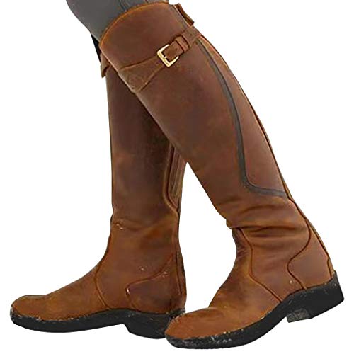Scarpe Stivali Stivaletti Anfibi da Donna con Cinghie Tasche Platform Inverno Caldo Neutro Med Heels Cool Retro Zip Riding Snow (38,Marrone)
