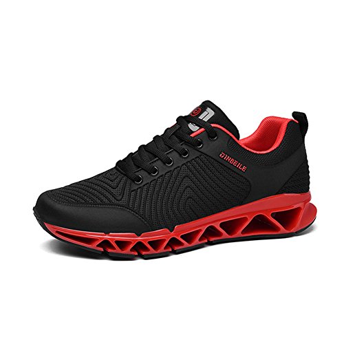 Scarpe da Uomo Stretch Raso Tulle Primavera Autunno Comfort Scarpe da Ginnastica Scarpe da Corsa Split Joint per Athletic Casual Outdoor Nero Rosso (Color: B, Dimensione: 41)