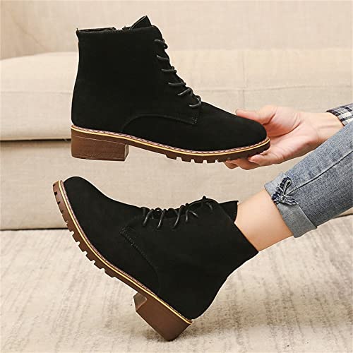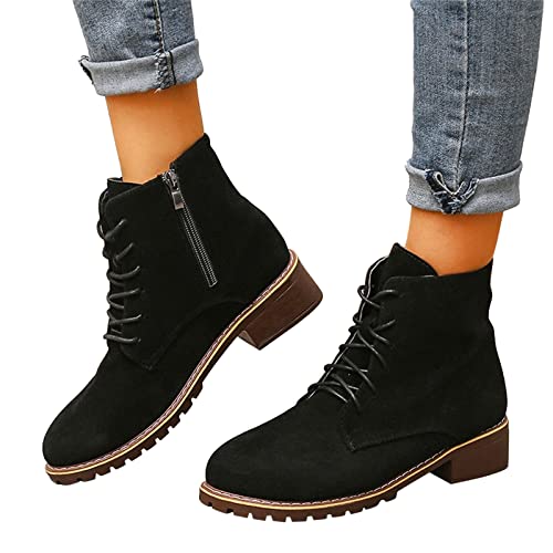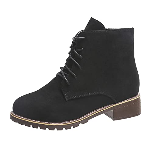 Scarpe Stringate Donna Impermeabile Stivaletti Donna in Pelle Autunno Vintage Stringate Scarpe da Donna Stivaletti con Tacco Comodi Piatto Stivale Corto (37 EU,Nero)