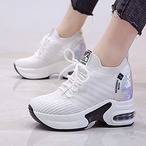Scarpe vulcanizzate da Donna Scarpe da Ginnastica Grosse da Donna Tacchi nascosti Piattaforma con Zeppa Scarpe da Ginnastica 9CM Maglia Traspirante Scarpe Stringate Bianche Nere