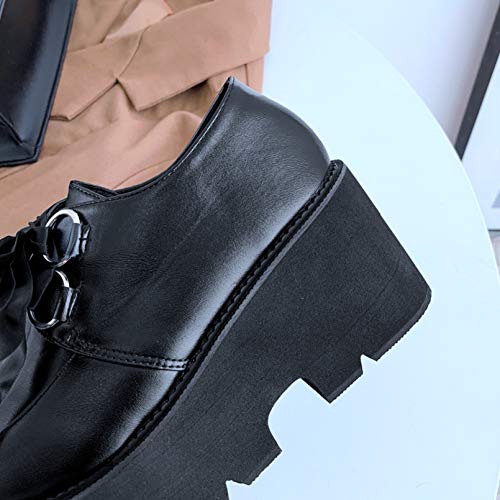 Scarpe con Zeppa con Plateau Scarpe da Donna Comode Primavera-Autunno Stringate in Pelle PU Scarpe Creepers Punta Tonda Scarpe Formali Mary Jane