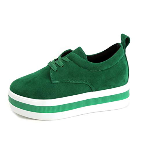 Scarpe con Zeppa con Plateau da Donna Moda Primavera Scamosciato Stringate Scarpe Basse Fondo Retro Sneakers Basse Traspiranti con Punta Arrotondata Casual