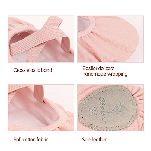 Scarpette da Danza, da Mezza Punta, in Tela, Suola Spezzata, Varie Misure per Bambini e Adulti Rosa Nuovo EU 34
