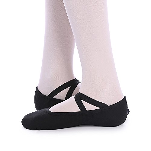 Scarpette da danza, da mezza punta, in tela, suola spezzata, varie misure per bambini e adulti nero EU 40