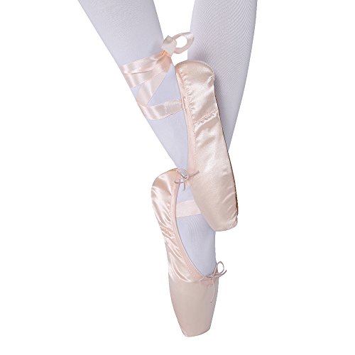 Scarpette da punta da ragazza rosa con imbottitura per le dita e nastri, numeri dal 33 al 40 (si consiglia di scegliere un numero in più), donna, albicocca, EU36=Inside length: 225 mm=8.85 inch