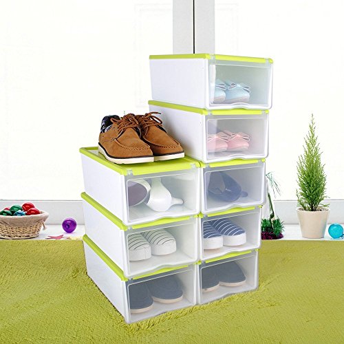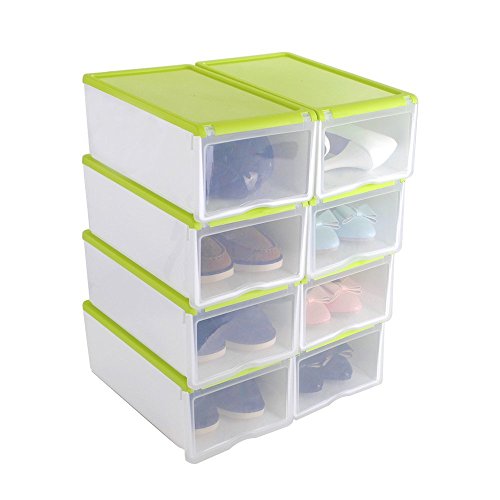 Scarpiera impilabile in plastica, organizer con apertura, trasparente, set da 8, dimensioni: 33 x 22 x 14 cm, colore: bianco, di HST Green