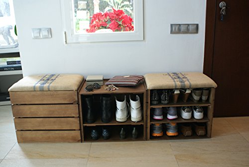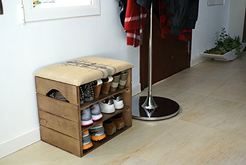 LIZA SCARPIERA di Legno (Noce Marrone), con Seduta Imbottita e Foderata con Tessuto di Tela. Utile per riporre e ordinare Le Calzature: Scarpe, Pantofole, Sandali, Scarpe Sportive 51 x 47 x 35 cm