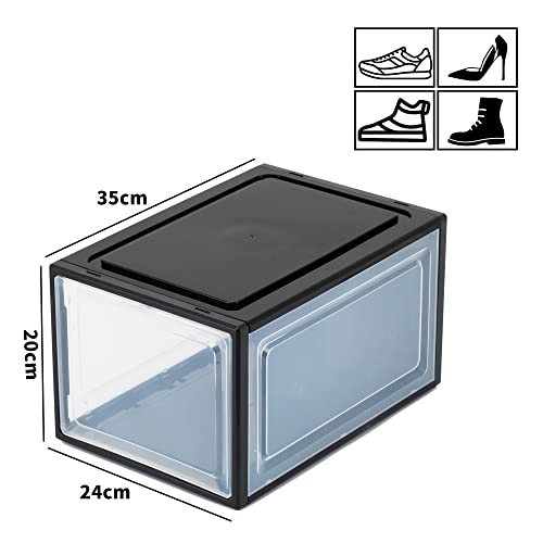 【Spazio più ampio】 La dimensione di ogni scatola da scarpe è 35,5 * 24,5 * 20 cm, abbastanza grande per scarpe da uomo fino alla taglia 13. È adatta per scarpe da ginnastica o scarpe da ginnastica da uomo e stivaletti da donna, tacchi alti e altre scarpe basse. È anche un'ottima scelta per gli amanti delle scarpe.