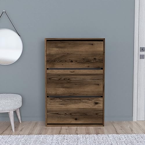 En.casa - Scarpiera Salvaspazio Slim con 3 Contenitori Ribaltabili Portascarpe Stretto da Ingresso Capienza 18 Paia 110 x 73,5 x 24 cm - Effetto Noce