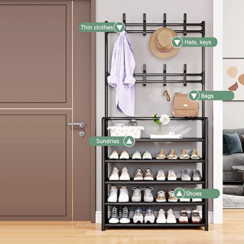 Organizer per scarpiere: questa è la combinazione perfetta di scarpiera, scaffale per bambini e altri organizzatori per piccoli oggetti. Con 8 ganci e 5 ripiani, può contenere 15-20 paia di scarpe e appendere cappelli, vestiti leggeri, accessori, sciarpe, chiavi e molto altro ancora. Con la scarpiera con gruccia troverete rapidamente ciò di cui avete bisogno prima di uscire e non lasciate più andare in panico prima di uscire.