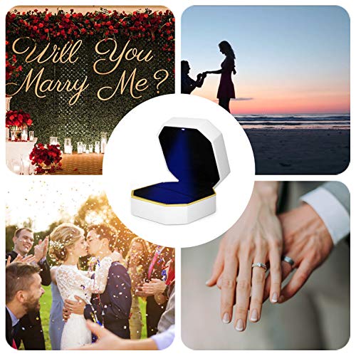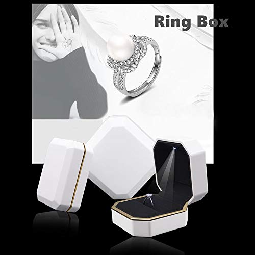 Luce LED: la piccola luce nella parte superiore si illumina una volta aperta la scatola e si illumina sull'oggetto che si inserisce. La brillantezza in un anello è perfetta per illuminare il diamante. Organizzatore perfetto per anelli, orecchini, ideale per proposte, anniversari, fidanzamenti, matrimoni, compleanni, ecc. Può anche essere un regalo per le mamme che hanno bisogno di una nuova scatola per anelli.