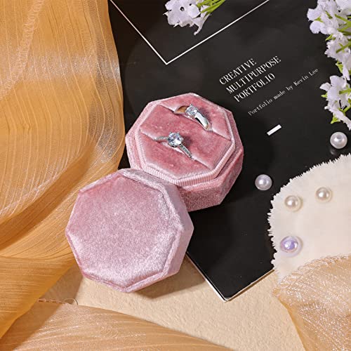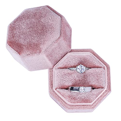 AIEX Scatola per Anelli in Velluto 2 Slot, Squisito Ottagonale Scatola per Anelli Matrimonio Proposta Nuziali Fidanzamento Velvet Ring Box per Tenere 2 Anelli, Gioielli (Rosa)