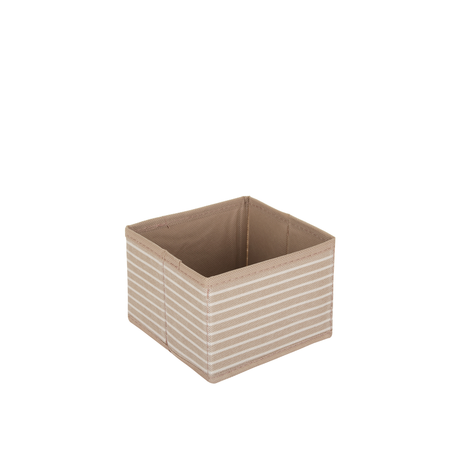 Le box casa della linea Sofia sono scatole davvero pratiche e indispensabili per organizzare al meglio il tuo armadio. Questo modello è pensato per aiutarti a tenere perfettamente in ordine cassettiere e guardaroba. Facile da montare, questa box è ideale per riporre oggetti e accessori come cinture, sciarpe e cappelli, ma anche magliette impilate, gestendo al meglio il cambio dell'armadio. Resistente e robusta, all'occorrenza si può piegare e appiattire per occupare il minimo spazio fino al prossimo uso e portarla anche in valigia per organizzare gli accessori in vacanza. L'estetica piacevole con design a righe grigie la rende una perfetta scatola da lasciare anche in bella vista. Dimensioni: 15x15x11 cm.