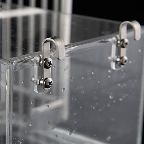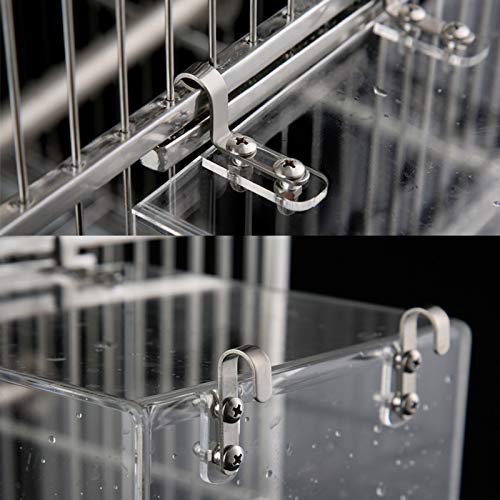 Facile da pulire: utilizzare le durevoli clip in metallo in acciaio inossidabile che si adattano alla maggior parte delle gabbie per uccelli e lavare direttamente la scatola con acqua, si prega di non notare per l'uso con gabbie a muro rotonde o ad arco.