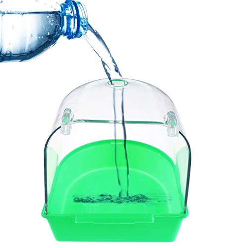 Scatola da bagno per uccelli, parrocchetto, per uccelli in gabbia, pappagallo, vasca, doccia con iniettore di acqua, accessori per piccoli uccelli, canarini, pappagalli, fringuelli, uccellini, verde