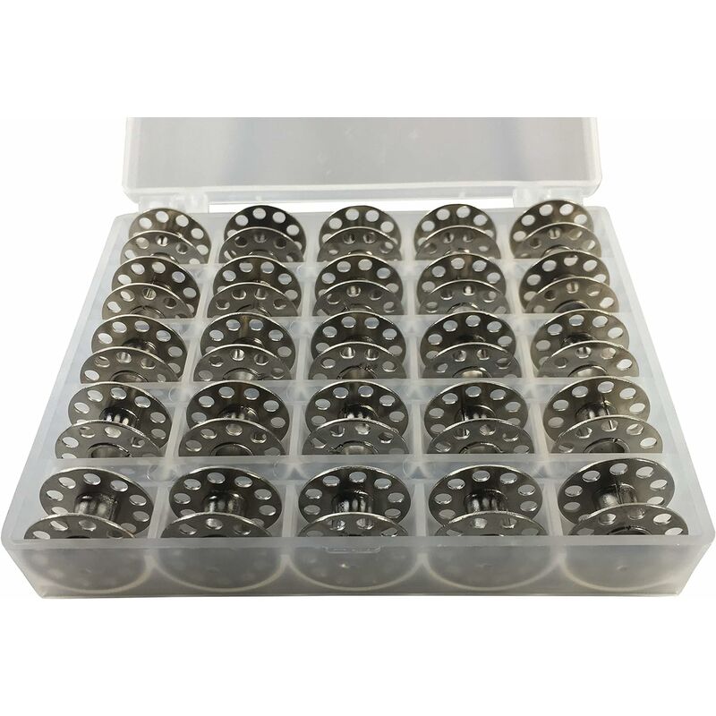 ADATTO: per la maggior parte delle bobine per macchine da cucire es: AEG, Babylock, Bernina, Brother, Carina, Elna, Gritzner, Husqvarna, Janome, Medion, Necchi, Privileg, Singer, Toyota, Veritas e molte altre ancora. Solo su una macchina da cucire Pfaff non si adattano. CONTENUTO: Portaspoline già confezionato, a scelta, con spole per macchina da cucire in plastica, metallo o con spole di filo avvolto MOVIMENTAZIONE: Grazie agli scomparti semicircolari, le lattine non possono scivolare e si inseriscono perfettamente nella capsula. MATERIALE: La scatola della bobina è realizzata in plastica trasparente infrangibile. Il filo per cucire è realizzato al 100% in poliestere. A seconda della selezione, le bobine vuote sono in metallo o plastica VANTAGGI: Conservazione perfetta per un massimo di 25 bobine - conservate in modo sicuro in una scatola di conservazione infrangibile. Descrizione del prodotto Specifica: Bobina di plastica piena di lattine in base alla selezione Qui troverai una
