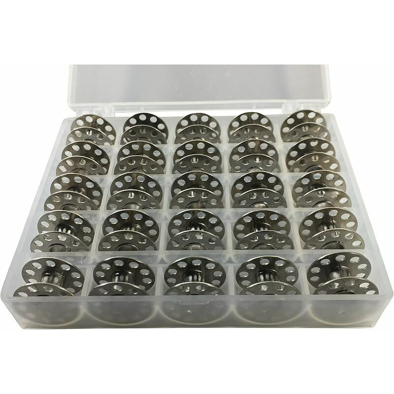 Adatto per la maggior parte delle bobine di macchine da cucire: AEG, Babylock, Bernina, Brother, Carina, Elna, Gritzner, Husqvarna, Janome, Medion, Necchi, Pfaff, Privilege, Singer, Toyota, Veritas ecc. porta spolette da utilizzare con bobine per macchine da cucire in plastica, metallo o con bobine di filato avvolto. Br> Uso: gli scomparti semicircolari impediscono alle bobine di scivolare e si inseriscono esattamente nella scatola delle bobine. Materiale: la scatola della bobina è realizzata in plastica trasparente infrangibile. Il filo per cucire è realizzato al 100% in poliestere. I rulli vuoti sono realizzati in metallo o plastica, a seconda della scelta. Br> Pro: Conservazione perfetta per filati fino a 25 bobine in modo sicuro in una scatola di immagazzinaggio infrangibile. Caratteristica: Adatto per la maggior parte delle bobine di macchine da cucire, ad esempio: AEG, Babylock, Bernina, Bruder, Carina, Elna, Gritzner, Husqvarna, Janome, Medion, Necchi, Pfaff, Privilege, Singer