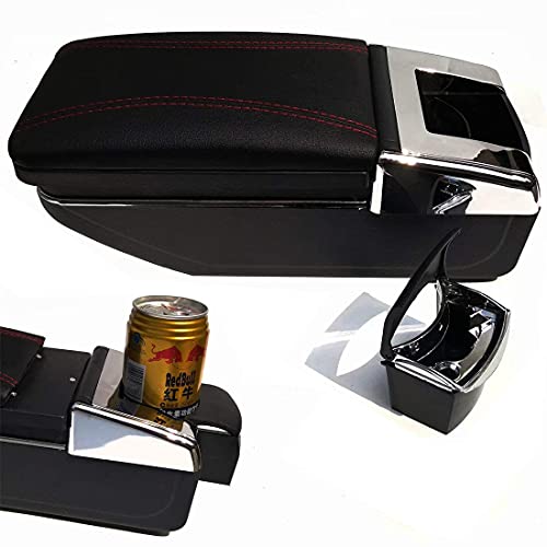Scatola Braccioli Console di Stoccaggio con Portabicchieri Per Picanto USB Charging (a-Singolo strato-nero con filo rosso)