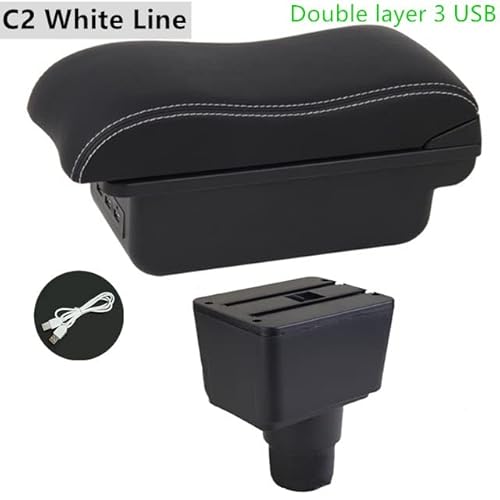 Scatola bracciolo per Ford per EcoSport 2018 2019 2020 2021 Bracciolo Auto Box Bracciolo Dettagli Interni Retrofit Centro Scatola di Immagazzinaggio Console (Colore: Bianca, Size: C2)