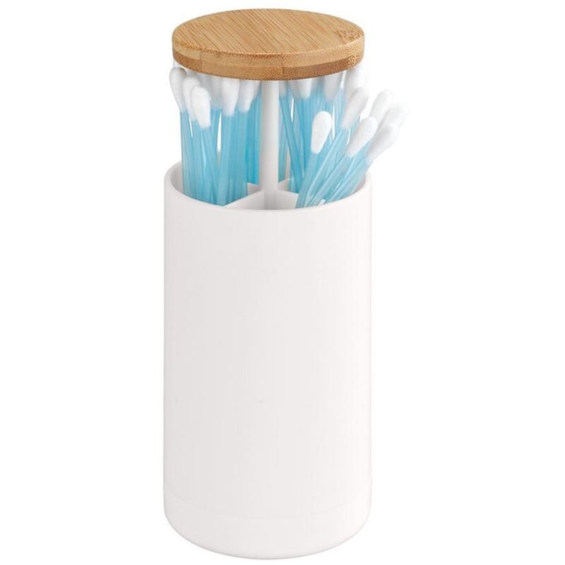 Con l'affascinante supporto per il cotone, il bagno ottiene un elegante e innovativo sistema d'ordine. Nel pratico distributore di tampone di cotone è possibile salvare facilmente le orecchie per uso quotidiano. Per tutti coloro che amano l'ordine nel bagno è un vero bisogno. L'applicazione è particolarmente confortevole: premere brevemente, si apre il distributore intelligente. Pressata ancora una volta, il contenuto scompare ben protetto e igienico all'interno. Il coperchio è di bambù di alta qualità, che è difficile e resistente. Il materiale offre anche chiare vantaggi in termini ecologici: Bamboo è una materia prima in rapida crescita ed è totalmente alla moda. Il corpo in plastica bianco stabile crea il contrasto desiderato e attirerà tutti gli sguardi in qualsiasi bagno. Materiale: Polistirolo, Copertura: Bambù, Colore: Bianco, Copertura: Brown. Dimensioni: 6,5 x 11,5 cm. Peso netto: 118 g.