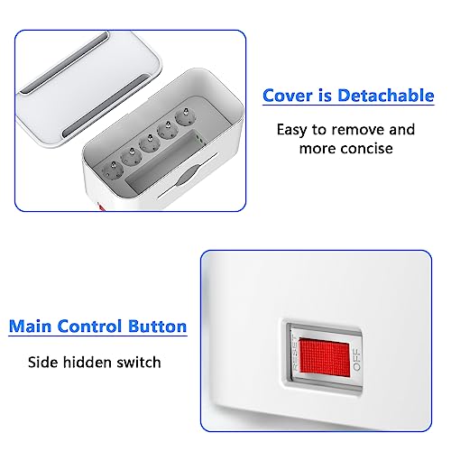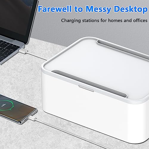 Scatola Cavi con Ciabatta USB, Presa Multipla con Protezione Contro le Sovratensioni 5 Scomparti con 3 Cavi USB Scatola Organizer con Adattatore Presa 2500W con Cavo 2m, 29,5 * 14 * 14cm Bianco