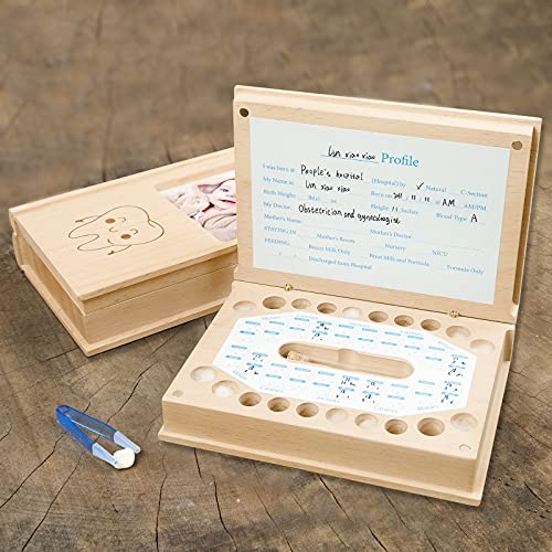 Scatola per Denti da Latte, Organizzatore di Ricordi per Bambini in Legno per Denti da Latte, con Pinzette e Bottiglia di lanugine per Conservare la Memoria dell'infanzia