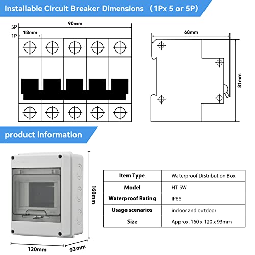 【Varie Applicazioni】La scatola di distribuzione DIN a 5 vie del quadro elettrico fornisce una protezione di sicurezza per il circuito a parete. Ampiamente utilizzato in ambienti interni ed esterni, ampiamente utilizzato in case, officine, hotel, centri commerciali, centrali elettriche, ecc.
