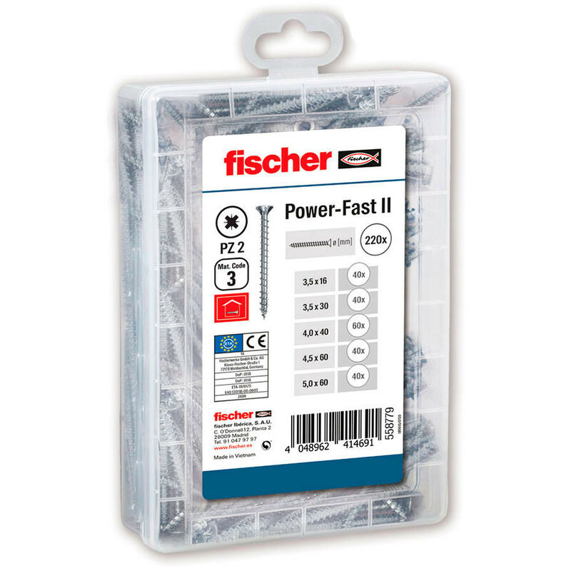 Confezione 220 viti assortite fpfii misterbox fischer. include 40uni 3,5x16, 40uni 3,5x30, 60uni 4,0x40, 40uni 4,5x60, 40uni 5,0x60