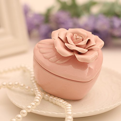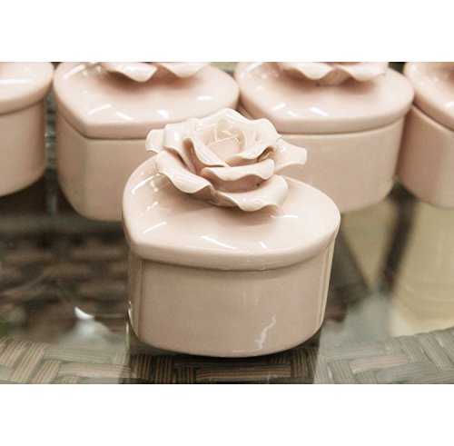 Scatola Forma Cuore In Materiale Ceramica-Portaconfetti Bomboniere Fiore Elegante Regalo Tavolo Matrimonio (Rosa)