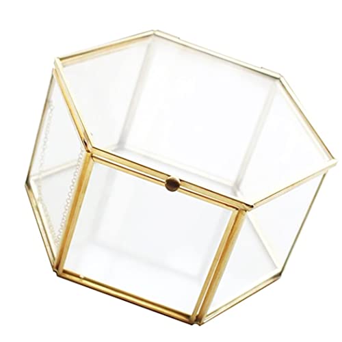 Scatola di gioielli in vetro trasparente fiore geometrico di stoccaggio geometrico scatola trasparente esagonale per la scelta creativa di conservazione dei fiori