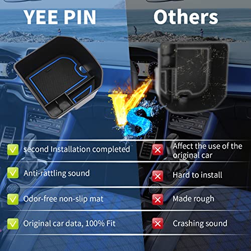YEE PIN Auto Scatola di Immagazzinaggio Accessori per Car Compatibile con T Roc troc SUV 2017-2021 Center Console Bracciolo Box Storage Secondario Vassoio Estraibile con Tappetino Antiscivolo