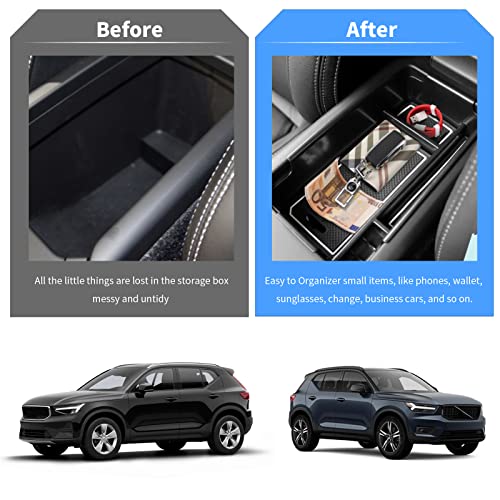 YEE PIN Auto Scatola di Immagazzinaggio Accessori per Car Compatibile con XC40 2018-2021 2022 Center Console Bracciolo Box Storage Secondario Vassoio Estraibile con Tappetino Antiscivolo