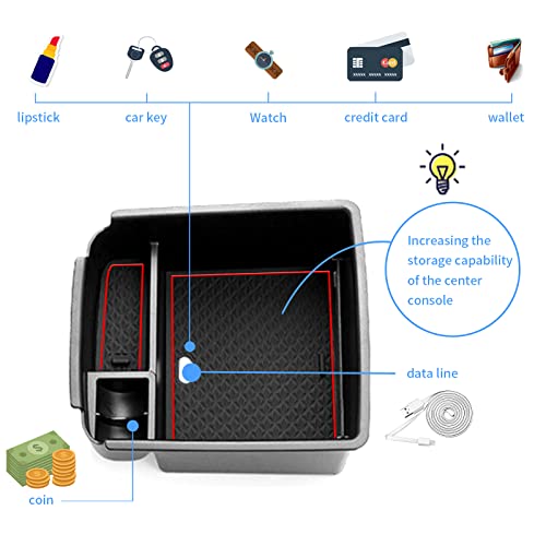 YEE PIN Scatola di immagazzinaggio compatibile con Tiguan 2 2017-2022, organizer per console centrale, vassoio per braccioli, accessori interni, controllo centrale (rosso)