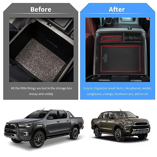 YEE PIN Scatola di immagazzinaggio compatibile con Toyota Hilux 2016-2022 2023 console centrale organizer vassoio per braccioli, accessori con tappetino antiscivolo