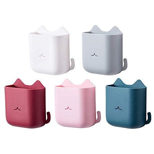 Scatola di Immagazzinaggio del Telecomando,5 Pezzi Scatola Porta Cellulare a Muro,Supporto per Telecomando Autoadesivo,per Mini Contenitori Portaoggetti Casa e Ufficio(Bianco,Grigio,Rosa,Blu,Rosso)