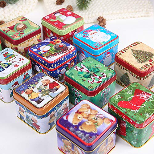 【Set di scatole di latta natalizie】 Riceverai una scatola di caramelle quadrata di latta natalizia da 4 pezzi, incluso un diverso motivo a tema natalizio (stile casuale) per creare una forte atmosfera natalizia.