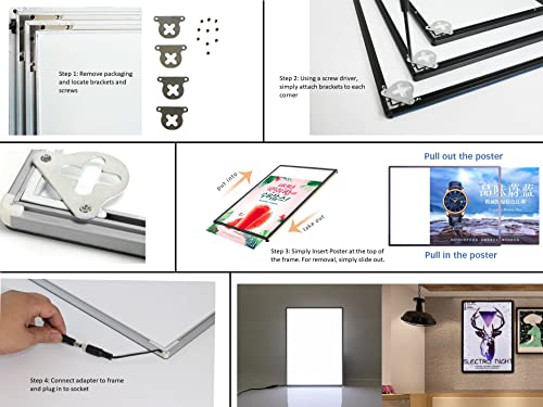 Scatola luminosa a LED formato A2, cornice ultra sottile da parete, per menù retroilluminata, per ristoranti, bar, negozi, da asporto, porta poster illuminato (A2, nero)
