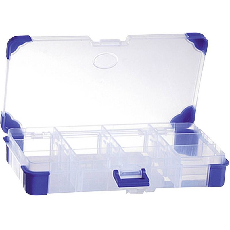 Dettagli tecnici Caratteristiche componenti suddivisione variabile Colore Trasparente Dimensione del prodotto, larghezza 110 mm Dimensione del prodotto, lunghezza 200 mm Dimensioni (L x L x A) 200 x 110 x 30 mm Dimensioni prodotto Altezza 30 mm Famiglia colore trasparente Materiale Polipropilene Peso 140 g Scomparti 12 Tipo prodotto Scatola minuteria Cassetta di assortimento Polypro Cassetta di assortimento con pannelli divisori estraibili. Punti di forza e dettagli Con scomparti regolabili Caratteristiche Materiale: parte inferiore e coperchio in polipropilene infrangibile di alta qualità (PP5) Angoli arrotondati Protezione aggiuntiva degli angoli grazie all'opacizzazione dell'impugnatura in gomma Resistente agli acidi e alle soluzioni alcaline. Resistente al freddo Chiusure a scatto stabili Catalogazione sicura, scomparti a chiusura sicura con coperchio Incluso nella consegna null Requisiti di sistema null