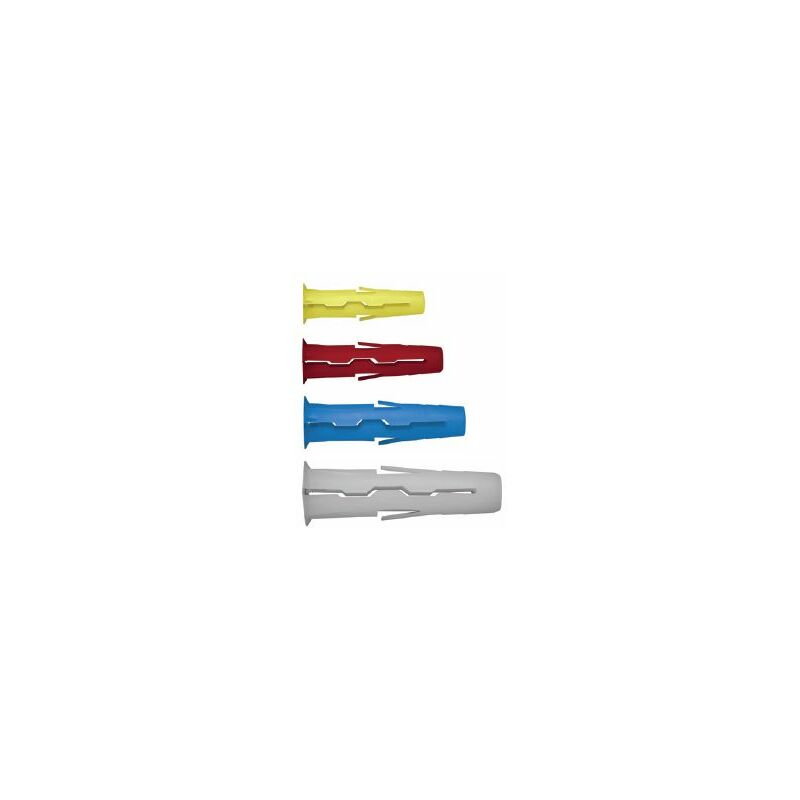 Scatola da 200 pioli gialli Ø 5 x 24 mm Tassello versatile in polipropilene di alta qualità. per il fissaggio nel cartongesso e in tutti i tipi di supporti cavi e pieni. Ideale per ristrutturazioni, viti di diversi diametri per dimensione tassello. Espansione totale per applicazione in fori irregolari e sottofondi irregolari. Flangia e alette antirotazione per un'installazione rapida e universale. Si ritrae quando la vite perfora il fondo. Scatola da 200 tappi gialli Ø 5 x 24 mm per viti Ø 3/4,5 mm UNO-K-05