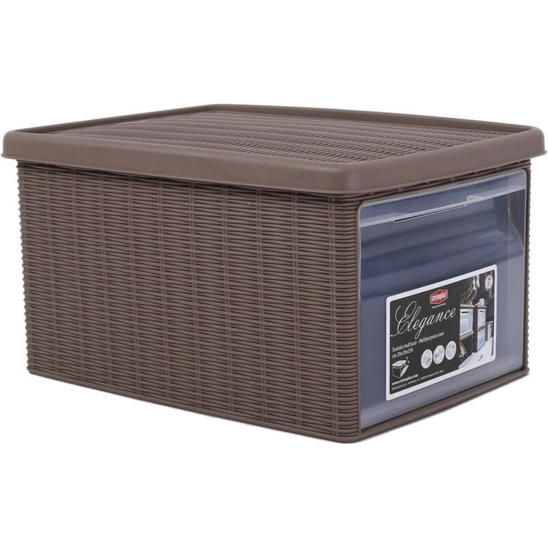 In plastica, con apertura frontale.medium cm 29 x 39 x h 21 tortora