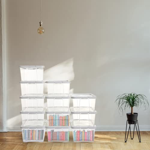 12 Scatola Multiuso Scatola Scarpe Trasparente in Plasticacon Coperchio 35 x 20 x 12,5 cm