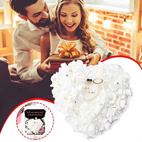 Scatola per fedi nuziali rosa a forma di cuore, porta fedi nuziali, cuscino per anello rosa in schiuma di raso per 2 anelli, cuscino per anello cuore Bomboniere romantiche rosa bianche