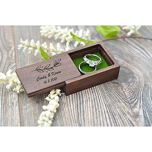 Scatola per FEDI Nuziali in Legno Personalizzata, Scatola per Anelli Push-Pull in Legno massello di Noce Nera Personalizzata con Incisione di Nomi e Scatola per Anello Data