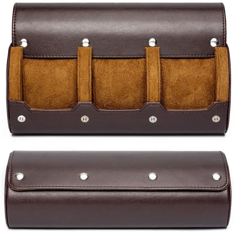 Custodia per orologio a 3 slot - 22 x 10 x 7 cm. La versione aggiornata della scatola dell'orologio ha un cuscino rimovibile e un robusto divisorio, abbastanza grande da contenere 3 orologi con quadranti grandi. Solo la scatola dell'orologio, escluso l'orologio. 【Materiale Premium】 La cassa dell'orologio da viaggio è realizzata in pelle PU di alta qualità marrone scuro, le cuciture sono pulite e coerenti, i dettagli sono squisiti, l'interno è realizzato in morbido velluto, la solida partizione forma tre fessure separate e ogni orologio è avvolto in un cuscino super morbido, può impedire lo scivolamento e l'attrito tra gli orologi. La custodia per orologi è adatta per la maggior parte delle dimensioni e degli stili di orologi. 【Stabilità del fondo piatto】Il retro di questa custodia da viaggio per orologi è piatto, quindi puoi metterlo su un tavolo o una scrivania senza il rischio di cadere il bordo. Può anche essere facilmente riposto nella borsa o nella valigia, che è facile da