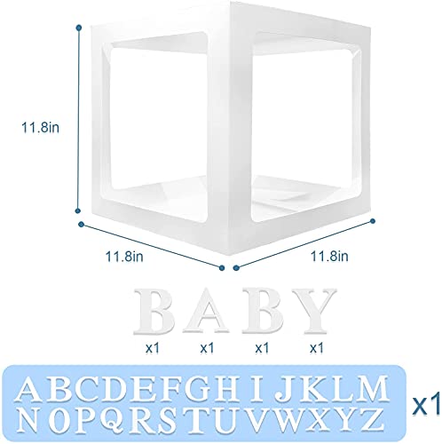 Scatola di palloncini per baby shower 4 scatole bianche trasparenti + 26 lettere (A-Z) + lettere BABY, scatola di compleanno display genere blocco decorativo Decorazioni per feste di festa