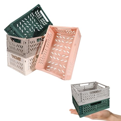 4Pcs Scatola Pieghevole, Medio Scatole Pieghevoli Stabili, Contenitori Impilabili, Cesto di Stoccaggio Pieghevole, Facili da Trasportare per Cucina, Bagno, Ufficio, Camera da Letto, Aula(15x9.8x7cm)