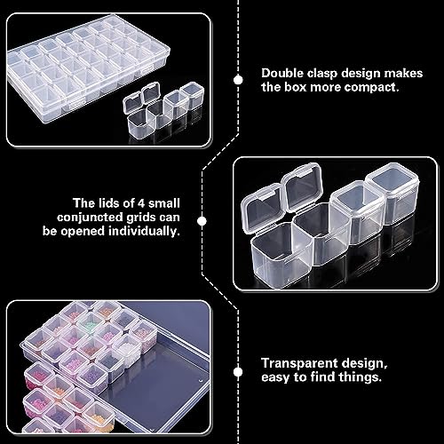 Scatola di Pittura a Diamante, 3Pz Scatola di Pittura Diamantata 5D con 28 Mini Scomparti, Ricamo Scatola Pittura per Pittura Diamante Fai da Te/Scatola da Ricamo con Diamante Ha un Design Trasparente
